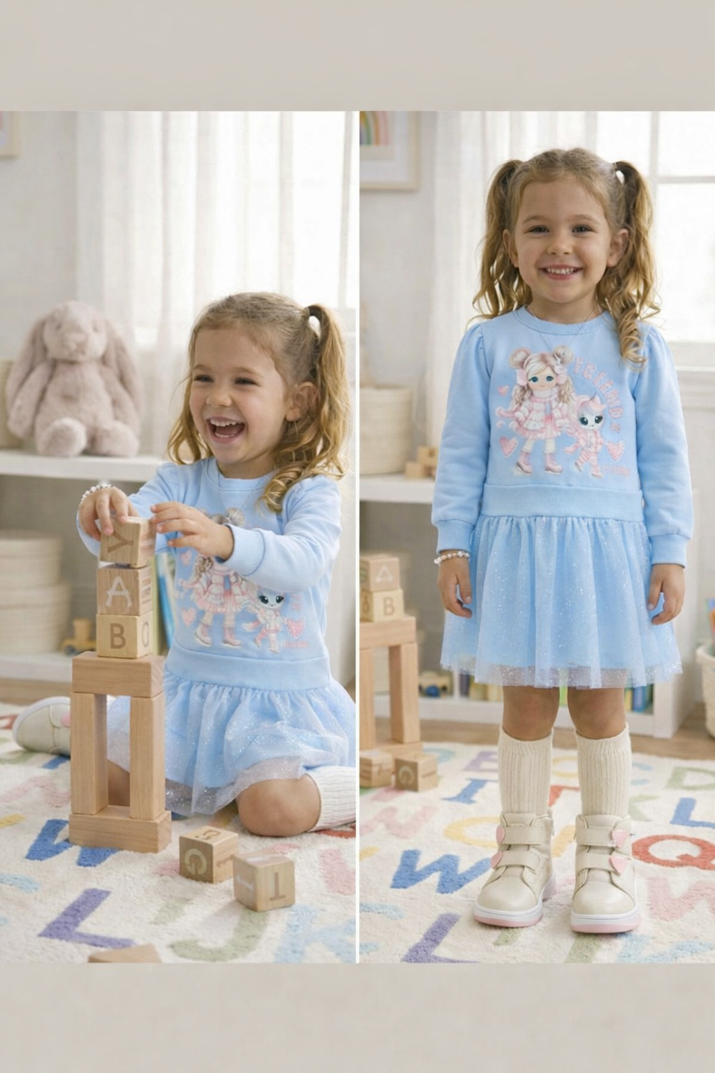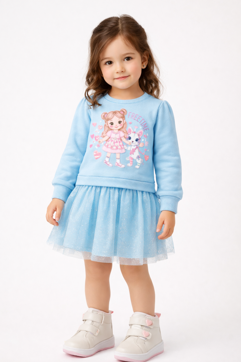 O Vestido Infantil em Moletom Felpado e Tule Fóil é o mix perfeito entre o conforto quentinho e o glamour das princesas.O blusão é confeccionada em Moletom Felpado, garantindo máximo aconchego e aquecimento para o corpo. A saia, por sua vez, é feita em Meia Malha e sobreposta com um delicado Tule Fóil, que adiciona um brilho encantador e volume rodado.